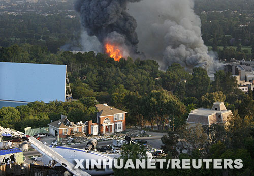 6月1日,美國洛杉磯市區(qū)旁的好萊塢電影外景場地發(fā)生大火。 新華社/路透