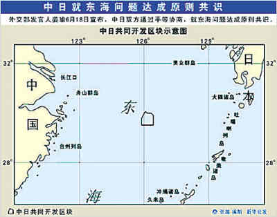 外交部發(fā)言人姜瑜18日宣布,中日雙方通過平等協(xié)商,就東海問題達(dá)成原則共識。 一、關(guān)于中日在東海的合作 為使中日之間尚未劃界的東海成為和平、合作、友好之海,中日雙方根據(jù)2007年4月中日兩國領(lǐng)導(dǎo)人達(dá)成的共識以及2007年12月中日兩國領(lǐng)導(dǎo)人達(dá)成的新共識,經(jīng)過認(rèn)真磋商,一致同意在實(shí)現(xiàn)劃界前的過渡期間,在不損害雙方法律立場的情況下進(jìn)行合作。為此,雙方邁出了第一步,今后將繼續(xù)進(jìn)行磋商。 二、中日關(guān)于東海共同開發(fā)的諒解 作為中日在東海共同開發(fā)的第一步,雙方將推進(jìn)以下步驟: 。ㄒ唬┯梢韵赂髯鴺(biāo)點(diǎn)順序連線圍成的區(qū)域?yàn)殡p方共同開發(fā)區(qū)塊(見上圖): 北緯29°31′,東經(jīng)125°53′30″;北緯29°49′,東經(jīng)125°53′30″;北緯30°04′,東經(jīng)126°03′45″;北緯30°00′,東經(jīng)126°10′23″;北緯30°00′,東經(jīng)126°20′00″;北緯29°55′,東經(jīng)126°26′00″;北緯29°31′,東經(jīng)126°26′00″ 。ǘ╇p方經(jīng)過聯(lián)合勘探,本著互惠原則,在上述區(qū)塊中選擇雙方一致同意的地點(diǎn)進(jìn)行共同開發(fā)。具體事宜雙方通過協(xié)商確定。(三)雙方將努力為實(shí)施上述開發(fā)履行各自的國內(nèi)手續(xù),盡快達(dá)成必要的雙邊協(xié)議。(四)雙方同意,為盡早實(shí)現(xiàn)在東海其它海域的共同開發(fā)繼續(xù)磋商。 三、關(guān)于日本法人依照中國法律參加春曉油氣田開發(fā)的諒解 中國企業(yè)歡迎日本法人按照中國對外合作開采海洋石油資源的有關(guān)法律,參加對春曉現(xiàn)有油氣田的開發(fā)。 中日兩國政府對此予以確認(rèn),并努力就進(jìn)行必要的換文達(dá)成一致,盡早締結(jié)。雙方為此履行必要的國內(nèi)手續(xù)。 |