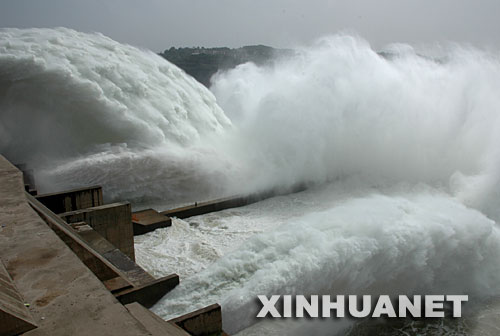 6月23日,黃河小浪底水庫大流量下泄,飛瀑景觀再現(xiàn)小浪底。