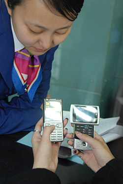 奧運(yùn)協(xié)辦城市沈陽的市民正在選購、試用3G手機(jī)。新華社發(fā)(王齊波 攝)