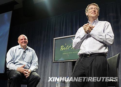 6月27日,在美國(guó)華盛頓州雷德蒙德的微軟公司總部,美國(guó)微軟公司聯(lián)合創(chuàng)始人比爾·蓋茨(右)在員工送別自己的活動(dòng)中講話(huà)。旁邊是微軟首席執(zhí)行官史蒂夫·鮑爾默。當(dāng)天,比爾·蓋茨度過(guò)了他在微軟最后一個(gè)全職工作日。 新華社/路透