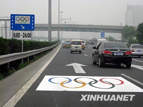 北京奧運(yùn)會(huì)奧林匹克專用車道從7月5日起陸續(xù)施劃,施工涉及長安街以及二、四、五環(huán)路等道路。它由奧林匹克專用車道標(biāo)志、標(biāo)線和地面標(biāo)識(shí)組成。車道自7月20日啟用,至9月20日止,專供奧林匹克車輛通行,單向總長285.7公里。
