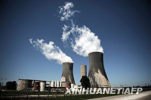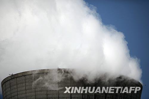 這是7月9日在法國南部博萊訥拍攝的特里卡斯坦核中心兩座核反應(yīng)堆之一的冷卻塔。新華社/法新 |