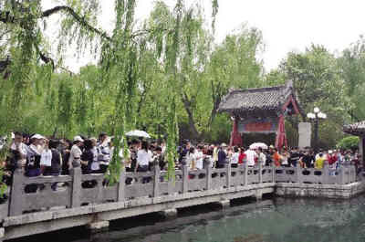 隨著酷暑來臨,山東濟(jì)南“泉水游”迎來游客高峰。眾多外地游客來到濟(jì)南賞泉,在泉邊享受難得的清涼。圖為7月11日,眾多游人在濟(jì)南趵突泉畔游覽。