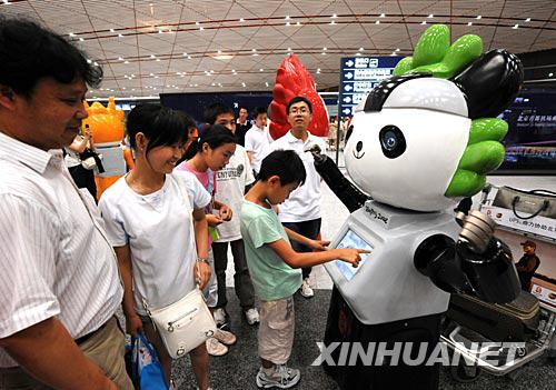7月15日,旅客與奧運福娃機器人交流。 | |