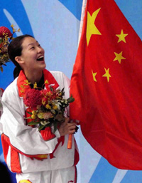 1992年的巴塞羅那奧運會上,年僅14歲的伏明霞奪得了10米跳臺冠軍,成為了奧運史上最年輕的冠軍,隨后她的照片被登在美國《時代》周刊的封面上,這也創(chuàng)下了中國運動員之先河;此前一年,她還贏得了第六屆世界錦標(biāo)賽跳臺桂冠,成為最年輕的世界冠軍并被載入《吉尼斯世界紀(jì)錄大全》;1996在亞特蘭大奧運會上,她奪得臺板雙料冠軍,成為繼高敏奪得漢城和巴塞羅那奧運會3米板冠軍之后,蟬聯(lián)跳水冠軍的第二人,這又是一個世界紀(jì)錄。