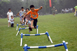 日前,北京海淀區(qū)四季青鎮(zhèn)在玉東園體育廣場上舉行了“社區(qū)奧運會”,社區(qū)市民在家門口體驗奧運、參與奧運。