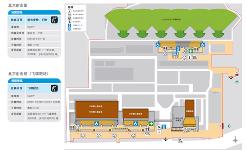 北京射擊館與北京射擊場(飛碟靶場)實行統(tǒng)一安檢,從東側(cè)兩個安檢口均可進(jìn)入。