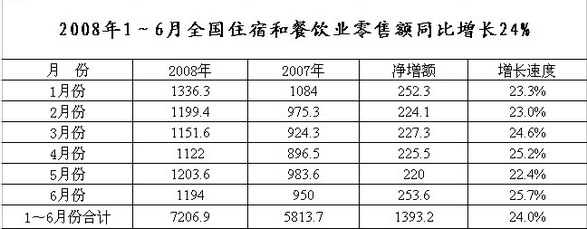 今年以來(lái),全國(guó)住宿與餐飲業(yè)盡管受南方低溫雨雪冰凍、汶川大地震等嚴(yán)重自然災(zāi)害以及物價(jià)上漲、勞動(dòng)力成本提高的影響,企業(yè)經(jīng)營(yíng)出現(xiàn)一定程度的波動(dòng),但餐飲市場(chǎng)仍呈現(xiàn)出平穩(wěn)增長(zhǎng)的良好態(tài)勢(shì),預(yù)計(jì)全年餐飲市場(chǎng)仍將繼續(xù)保持快速發(fā)展。 據(jù)有關(guān)數(shù)據(jù)分析,上半年,全國(guó)住宿與餐飲市場(chǎng)持續(xù)高增長(zhǎng),零售額達(dá)到7207億元,同比增長(zhǎng)24%,比上年同期加快6.2個(gè)百分點(diǎn),占同期社會(huì)消費(fèi)品零售總額的比重為14.1%,拉動(dòng)社會(huì)消費(fèi)品零售總額增長(zhǎng)3.3個(gè)百分點(diǎn)。其中,6月份零售額實(shí)現(xiàn)1194億元,同比增長(zhǎng)25.7%,環(huán)比下降0.8%,比上年同期加快7.2個(gè)百分點(diǎn),比上月加快3.3個(gè)百分點(diǎn)。上半年住宿與餐飲業(yè)新設(shè)立外商投資企業(yè)338家,同比下降19.5%;合同外資金額14.1億美元,同比增長(zhǎng)3.9%;實(shí)際使用外資金額5.1億美元,同比增長(zhǎng)9.9%。其中,餐飲業(yè)實(shí)際使用外資金額2.2億美元,同比增長(zhǎng)34.8%。 上半年餐飲市場(chǎng)主要特點(diǎn):一是“農(nóng)家樂(lè)”餐飲倍受青睞。首次出現(xiàn)的“五一”、“清明”兩個(gè)小長(zhǎng)假,帶動(dòng)“農(nóng)家樂(lè)”休閑餐飲大幅增長(zhǎng),據(jù)監(jiān)測(cè),農(nóng)家樂(lè)餐飲消費(fèi)同比增長(zhǎng)達(dá)到30%。二是婚宴現(xiàn)象突出。據(jù)監(jiān)測(cè),今年春節(jié)、“五一”等假期,一些大中城市婚宴消費(fèi)增幅達(dá)到30%以上。 根據(jù)餐飲市場(chǎng)運(yùn)行規(guī)律,預(yù)測(cè)下半年餐飲市場(chǎng)快速增長(zhǎng)的勢(shì)頭不會(huì)改變,特別是在第三季度,隨著北京奧運(yùn)會(huì)的舉辦,全國(guó)住宿和餐飲消費(fèi)需求有望明顯增加。預(yù)計(jì)第三季度住宿與餐飲業(yè)零售額將達(dá)到3800億元,同比增長(zhǎng)24.7%;全年住宿與餐飲業(yè)零售額將達(dá)到15380億元,同比增長(zhǎng)24.5%;全國(guó)人均餐飲消費(fèi)支出將達(dá)到1158元,同比增長(zhǎng)23.9%。