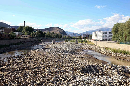 流經(jīng)新疆阿勒泰市的克蘭河河道因缺水而裸露出鵝卵石(7月23日攝)。新疆今年遭遇自1974年以來最為嚴(yán)重的旱災(zāi),全疆大部分地區(qū)春夏連旱已成定局,造成農(nóng)作物大面積絕收,2.8億畝草場(chǎng)干旱,畜牧業(yè)受災(zāi)嚴(yán)重。在旱情最為嚴(yán)重的塔城、阿勒泰兩地,受旱草場(chǎng)面積占到可利用草場(chǎng)面積的60%。 | |