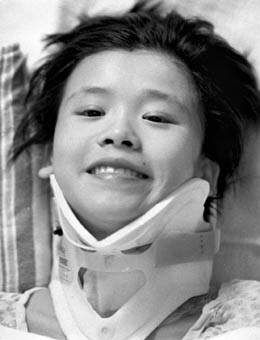 1998年7月22日,對于桑蘭來說是人生中一個最黑暗的日子。正處在一個運動員的黃金年齡——17歲的桑蘭在第四屆美國友好運動會的一次跳馬練習(xí)中,不慎受傷導(dǎo)致高位截癱,。一次意外的事故使她永遠不能再參加比賽,甚至永遠不能再站起來了。但是,人生的災(zāi)難沒有讓桑蘭屈服,面對新的人生境遇,她用她陽光般的微笑,堅毅地選擇開辟新的人生道路,并開始在輪椅上創(chuàng)造一個又一個人生奇跡。
