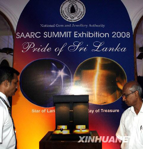7月30日,在斯里蘭卡首都科倫坡,南亞區(qū)域合作聯(lián)盟(南盟)峰會(huì)珠寶展上展出一枚產(chǎn)自斯里蘭卡的393克拉的藍(lán)寶石“蘭卡之星”。斯里蘭卡盛產(chǎn)寶石,寶石的數(shù)量及品種之多、質(zhì)量之好,聞名遐邇,遠(yuǎn)銷世界各地。 | |