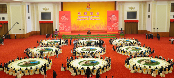 8月8日,中國國家主席胡錦濤和夫人劉永清為出席北京奧運(yùn)會(huì)的貴賓舉行歡迎宴會(huì)。