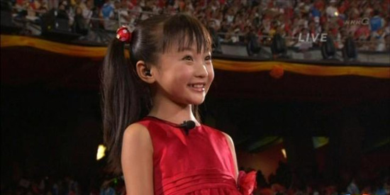 “五星紅旗迎風(fēng)飄揚(yáng),勝利歌聲多么響亮……”清脆的童音響徹“鳥(niǎo)巢”上空。前晚8時(shí)06分,北京奧運(yùn)會(huì)開(kāi)幕式升旗儀式前,一名身著紅色紗裙的女孩出現(xiàn)在電視畫(huà)面中,她緊攥拳頭,領(lǐng)唱《歌唱祖國(guó)》。 許多人被她感動(dòng)了。 她就是被張藝謀“欽點(diǎn)”的9歲小童星林妙可,今年9歲,在北京東城區(qū)西中街小學(xué)就讀三年級(jí)。