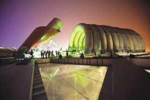除了“火墻”外,創(chuàng)意部門還曾設(shè)想過如音樂噴泉一般的音控火炬,讓火焰呈現(xiàn)五環(huán)的色彩,對這些創(chuàng)意,專家們都進行了技術(shù)可行性研究。 “我們采用了音樂處理模塊,用計算機來適配音樂節(jié)奏和火焰高度、外形之間的關(guān)系,通過動態(tài)控制燃?xì)饬髁,就像音樂噴泉一樣,隨著音樂的節(jié)奏,讓火焰在空中起舞。但這種技術(shù)是要依托于‘火墻’設(shè)計的,‘火墻’否決了,這一方案也就被放棄! 此時,專家們已經(jīng)通過在氣體中添加各種化合物,使火焰產(chǎn)生紅、黃、藍(lán)、綠色,“五環(huán)中除了黑色,其他四色都齊了,但小流量的實驗效果還不錯,但在大流量的燃燒試驗里,添加色彩的效果就不行了,所以這種創(chuàng)意設(shè)想也沒能成功。”