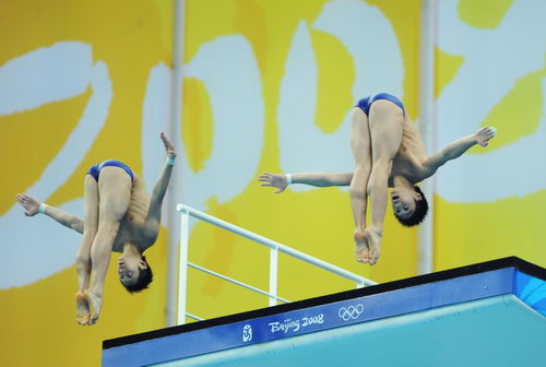 第一輪比賽是規(guī)定動(dòng)作,難度系數(shù)都是2.0,林躍/火亮組合選擇了向前翻騰半周-屈體的101B動(dòng)作開場(chǎng),結(jié)果兩名小伙子入水干凈利落的完成了開場(chǎng)秀,57.00的高分令現(xiàn)場(chǎng)觀眾尖叫,第二名的俄羅斯選手格列布·加爾佩林/德米特里·多布羅斯科克,成績是53.40比落后中國隊(duì)3.6分,澳大利亞,英國,德國并列第三,分?jǐn)?shù)都是52.80。 第二輪比賽,林躍/火亮選擇了401B,這個(gè)動(dòng)作是向內(nèi)翻騰半周-屈體,動(dòng)作難度也是2.0,這輪完成的更為精彩,裁判席只有兩個(gè)打出了9.5分,其他的都是10分,得分59.40,總分116.40,已經(jīng)開始與其他對(duì)手拉開差距,觀眾的歡呼似乎意味著這輪比賽完了,冠軍就已經(jīng)產(chǎn)生了。本輪過后俄羅斯以109.80排在第二,德國第三。 第三輪開始,這輪開始是自選動(dòng)作,中國小伙子選擇了5253B,向后翻騰兩周半轉(zhuǎn)體一周半-屈體,難度系數(shù)3.4,動(dòng)作完成的依然精彩,但是火亮在入水的時(shí)候水花稍大,算一一點(diǎn)點(diǎn)遺憾,但還是以89.76的高分繼續(xù)領(lǐng)先,俄羅斯和德國依然位列2,3位。 第四輪比賽,中國隊(duì)選擇的是407C,向內(nèi)翻騰三周半-抱膝,難度系數(shù)3.2的動(dòng)作,雖然沒有上一輪的分?jǐn)?shù)高,但是還是以86.40的高分位居榜首,領(lǐng)先第二位的俄羅斯隊(duì)8分,德國隊(duì)依然第三。 第五輪比賽,林躍/火亮選擇了難度系數(shù)為3.4的307C,這個(gè)動(dòng)作是反身翻騰三周半-抱膝,動(dòng)作完成的是一氣呵成,最后得分86.70,總分379.26,這輪比賽俄羅斯隊(duì)出現(xiàn)嚴(yán)重失誤,但是之前的優(yōu)勢(shì)還是使他們穩(wěn)穩(wěn)坐住第二把交椅,德國隊(duì)依然第三。 最后一輪比賽開始,林躍/火亮選擇的是難度系數(shù)超高的5255B,向后翻騰兩周半轉(zhuǎn)體兩周半-屈體,有6個(gè)國家都選擇了這個(gè)動(dòng)作,它的難度系數(shù)是3.8,動(dòng)作堪稱完美,88.92的分?jǐn)?shù)已經(jīng)足以把中國隊(duì)帶上最高領(lǐng)獎(jiǎng)臺(tái),由于俄羅斯隊(duì)第5輪的失誤,最后只能屈居第三,亞軍被德國隊(duì)奪得。