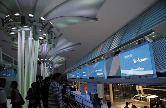 2008年8月9日,在文德恩教授致詞后,大眾汽車的奧林匹克主題館迎來(lái)了它的第一批嘉賓。這個(gè)與鳥巢遙相呼應(yīng),承載著大眾汽車奧運(yùn)夢(mèng)想的開(kāi)放式場(chǎng)館正式點(diǎn)燃了激情。 據(jù)大眾汽車集團(tuán)(中國(guó))市場(chǎng)部總監(jiān)胡波先生介紹,這一主題館是15家贊助商主題場(chǎng)館中惟一的開(kāi)放式建筑,一方面為了體現(xiàn)大眾汽車透明、開(kāi)放的企業(yè)文化,另一方面也希望帶給參觀者更多與自然接觸的機(jī)會(huì)。雖然只是一個(gè)使用兩個(gè)月的臨時(shí)建筑,并且據(jù)大眾汽車估算,每一名參觀者只會(huì)在其中逗留15到20分鐘左右,但是大眾汽車卻專門請(qǐng)來(lái)德國(guó)設(shè)計(jì)事務(wù)所進(jìn)行設(shè)計(jì),并由一家駐上海的德國(guó)公司進(jìn)行施工。據(jù)胡波先生透露,這一次的投入幾乎與一次A級(jí)車展相同,但他同時(shí)表示,這一場(chǎng)館絕不會(huì)成為汽車展示廳,而是展現(xiàn)品牌、企業(yè)文化與奧林匹克精神相結(jié)合的一個(gè)舞臺(tái)。 胡波先生介紹說(shuō),在場(chǎng)館上方是戶外70米長(zhǎng)的太陽(yáng)能背景墻與9塊可移動(dòng)式LED屏的結(jié)合運(yùn)用。在奧運(yùn)期間,主題館內(nèi)會(huì)進(jìn)行每場(chǎng)20分鐘左右的循環(huán)表演,不僅屏幕上會(huì)播出一些影片,而且會(huì)有特技演員與屏幕進(jìn)行互動(dòng)式表演。在奧運(yùn)比賽的重要時(shí)刻大屏幕會(huì)進(jìn)行現(xiàn)場(chǎng)直播,讓每一名參觀者時(shí)刻感受著奧運(yùn)的氣息。