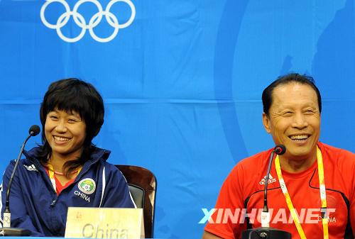 | 8月11日,中國女足主教練商瑞華(右)和球員韓端在新聞發(fā)布會上。新華社記者