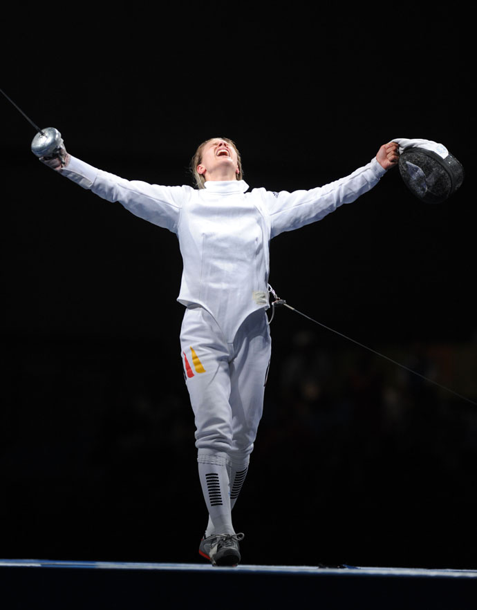 8月13日,德國(guó)選手布麗塔·海德曼在國(guó)家會(huì)議中心擊劍館舉行的奧運(yùn)會(huì)女子重劍個(gè)人決賽中戰(zhàn)勝羅馬尼亞選手安娜·瑪麗亞·布倫澤,獲得冠軍。