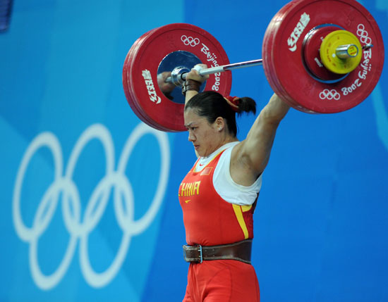 中國(guó)女將本屆奧運(yùn)會(huì)第四次站在舉重賽場(chǎng)的最高領(lǐng)獎(jiǎng)臺(tái)上。曹磊在女子舉重75公斤級(jí)比賽中摘得的這枚金牌,是中國(guó)女舉第一次在這個(gè)級(jí)別摘得奧運(yùn)會(huì)金牌,同時(shí)也實(shí)現(xiàn)了中國(guó)女舉在奧運(yùn)會(huì)上奪金的“滿貫”——至此中國(guó)女舉已經(jīng)獲得過(guò)奧運(yùn)會(huì)所有級(jí)別的冠軍。 15日的比賽再次毫無(wú)懸念。和自己的三名隊(duì)友一樣,曹磊在抓舉比賽結(jié)束后已經(jīng)基本鎖定勝局。最終她282公斤的總成績(jī)高出第二名16公斤之多,同時(shí),她還將該級(jí)別奧運(yùn)會(huì)三項(xiàng)紀(jì)錄都寫(xiě)上了自己的名字,其中兩次刷新總成績(jī)紀(jì)錄。不過(guò),她最終沒(méi)能刷新世界紀(jì)錄。 “最后一把我不太專注,因?yàn)槲液鋈幌氲饺ナ啦痪玫膵寢!辟惡笤诨旌蠀^(qū)面對(duì)記者采訪時(shí),胸前掛著“金鑲玉”金牌的曹磊泣不成聲,“這塊金牌,我要獻(xiàn)給我的祖國(guó)人民和我的母親! 中國(guó)女隊(duì)總教練馬文輝告訴記者,在名單公布后,他想了又想,還是決定告訴曹磊她母親去世的消息,“我想她有這個(gè)承受能力,我們不能瞞她! 俄羅斯選手娜·葉夫斯秋欣娜15日的表現(xiàn)一般,這位2007年世錦賽銅牌得主抓舉成績(jī)僅為117公斤,不到一年前,她曾舉起128公斤的重量。曹磊出場(chǎng)時(shí),所有對(duì)手都已經(jīng)結(jié)束了比賽,曹磊三次試舉全部成功,最終成績(jī)?yōu)?28公斤,這比第二位的哈薩克斯坦選手阿·瓦熱寧娜多了9公斤,也創(chuàng)造了新的抓舉奧運(yùn)會(huì)紀(jì)錄。 瓦熱寧娜和葉夫斯秋欣娜選擇了為銀牌而戰(zhàn),這讓曹磊的奪冠沒(méi)有了意外的可能。將開(kāi)把重量從155公斤降到147公斤并成功舉起后,曹磊實(shí)際上已經(jīng)穩(wěn)獲金牌,同時(shí),她還打破了總成績(jī)的奧運(yùn)會(huì)紀(jì)錄。瓦熱寧娜和葉夫斯秋欣娜最后一把都舉起147公斤,最終以266公斤和264公斤分列二三位。 挺舉第二把154公斤,曹磊再次刷新了挺舉和總成績(jī)奧運(yùn)會(huì)紀(jì)錄。 最后一把曹磊要了159公斤,這個(gè)重量和挺舉世界紀(jì)錄持平,但如果舉起,曹磊將刷新總成績(jī)世界紀(jì)錄。不過(guò),曹磊最終沒(méi)能舉起這一重量,最終以282公斤的總成績(jī)奪冠。 這是中國(guó)舉重隊(duì)本屆奧運(yùn)會(huì)獲得的第七枚金牌,這個(gè)數(shù)字再次刷新了舉重隊(duì)奧運(yùn)會(huì)最好戰(zhàn)績(jī)。同時(shí),這也是中國(guó)女隊(duì)繼2000年悉尼奧運(yùn)會(huì)后再次“包攬”所參加級(jí)別的四枚金牌。“我們做過(guò)最壞的準(zhǔn)備,這四場(chǎng)比賽我們每場(chǎng)都已盡心盡力!瘪R文輝總結(jié)說(shuō)。 而本屆奧運(yùn)會(huì)上獲得48公斤級(jí)和75公斤級(jí)金牌,也讓中國(guó)女隊(duì)享有了另一項(xiàng)榮譽(yù)——三屆奧運(yùn)會(huì),十一枚金牌,女子所有級(jí)別的金牌拿了個(gè)遍。