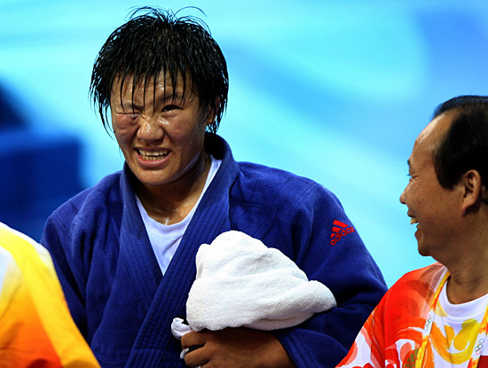 在山呼海嘯般的吶喊聲中,兩個(gè)強(qiáng)壯的女人頭部相牴,僵持不下。汗,一滴一滴掉在柔道墊上。 這是北京奧運(yùn)會(huì)女子柔道78公斤級(jí)的決賽,25歲的楊秀麗與古巴選手亞倫妮斯·卡斯蒂略進(jìn)行了本屆奧運(yùn)會(huì)歷時(shí)最長(zhǎng)的一次柔道比賽。楊秀麗右眼下部受傷,她有點(diǎn)睜不開這只眼睛,但她堅(jiān)信:她將贏得這枚金牌。 她贏了。她滿臉汗水,眼睛腫著,走下臺(tái)來,朝教練劉永福喊了聲“師父!” 就為了叫了這一聲,她整整努力了10年! 楊秀麗是在1998年碰到劉永福的。 在此之前,這位農(nóng)家姑娘練過鉛球,她從小力氣頗大,在她的老家遼寧省阜新市阜新蒙古族自治縣八家子鄉(xiāng)水泉村,家里院里現(xiàn)在還放著一個(gè)用來飲馬的大石槽子。這個(gè)大石槽子特別重,一般的成人想要搬動(dòng)它都很困難,但楊秀麗12歲時(shí)就能把它搬起來。 1997年,楊秀麗進(jìn)入阜新市體校練柔道,1998年,她進(jìn)入遼寧省隊(duì),在那里,她碰到了劉永福,中國柔道的傳奇教練。 楊秀麗很內(nèi)向,訓(xùn)練放不開,拿不出狠勁來。劉永福很急,怎么激她,都不管用。最后劉永福發(fā)了狠話:“就你這點(diǎn)膽量怎么沖奧運(yùn)會(huì)?要不趕緊回家得了!你前面就兩條路,一是把我摔倒,咱們一起拿奧運(yùn)冠軍,二就是回宿舍收拾東西滾蛋!” 楊秀麗被逼無奈,終于咬著牙沖向劉永福,一上手就把劉永福給撂翻了! 小姑娘嚇壞了,劉永福卻躺在地上樂,老胳膊老腿沒事。這以后,楊秀麗訓(xùn)練就放開了,敢喊敢沖。 但是,她一直不敢喊劉永!皫煾浮保瑢(duì)這位帶出過莊曉巖、孫福明、袁華三位奧運(yùn)冠軍的傳奇人物,她畏若天神。 如今,10年努力的艱辛長(zhǎng)路,終于在北京科技大學(xué)體育館畫上了一個(gè)圓滿句號(hào)。在賽后的新聞發(fā)布會(huì)上,楊秀麗終于解釋了原因:“10年了,我感覺自己水平?jīng)]到那個(gè)位置,感覺沒有資格叫他師父,今天,自己終于站在最高領(lǐng)獎(jiǎng)臺(tái)上,發(fā)自內(nèi)心叫他一聲‘師父’……” 冠軍頒獎(jiǎng)前,楊秀麗沒有直接登臺(tái),她先繞行一圈,輪流與三名獎(jiǎng)牌獲得者握手,此后才登臺(tái)接受頒獎(jiǎng)。全場(chǎng)中國觀眾與她一起大聲唱國歌。 這是中國選手時(shí)隔8年之后,重新登上女子柔道78公斤級(jí)的巔峰。在響成一片的閃光燈前,楊秀麗把金牌舉在胸前,她的手,不像一個(gè)25歲姑娘的手,骨節(jié)粗大,傷痕累累。 “她身體條件并不是太好,但特別能吃苦,”劉永福如是評(píng)價(jià)。 楊秀麗內(nèi)向,靦腆,但是獲得奧運(yùn)冠軍后,她的話多起來了,她說自己的愛好是練書法,每天晚上都要堅(jiān)持寫一寫,“我覺得寫得還可以,當(dāng)然,跟師父比就差得遠(yuǎn)了”。 劉永福一向讓自己的女弟子練習(xí)書法,在他看來,練書法能調(diào)解心氣,對(duì)一個(gè)高水平柔道選手而言,“靜氣”二字是大境界。 記者問她:“受傷了,有沒有影響比賽?” 她說:“視線是有些模糊,但這點(diǎn)傷算什么?抗震救災(zāi)精神一直鼓勵(lì)著我,說句土話,上戰(zhàn)場(chǎng)死都不怕,這個(gè)算什么?只有拼,才有活路!” 楊秀麗是一名軍人運(yùn)動(dòng)員,她為此自豪。