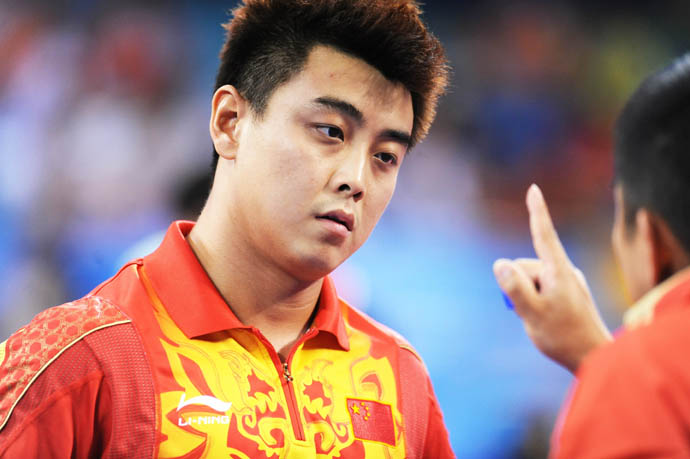 8月16日,中國選手王皓聆聽主教練劉國梁的指導。當日,中國隊在北京奧運會乒乓球男團半決賽中以3比0戰(zhàn)勝韓國隊,挺進決賽,將于18日與德國隊爭奪金牌。