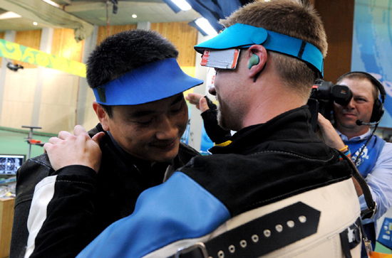 造化弄人。美國名將埃蒙斯竟然連續(xù)兩屆奧運會倒在最后一槍上。4.4環(huán)!在他射出這讓全世界觀眾再次目瞪口呆的成績后,50米步槍三姿金牌就像專屬中國人的大餡餅,迎面砸向33歲的江蘇老將邱健。 8月17日下午13時51分,北京奧運會射擊比賽還有一個人的最后一槍就將全部結束。此時其他參加男子50米步槍三姿的運動員都完成了比賽,中國隊邱健的成績最好,他利用最后一槍逆轉烏克蘭對手0.1環(huán),1272.5環(huán)的成績足以保證他獲得一塊銀牌。 那個還沒有完成比賽的是美國人馬修·埃蒙斯,他最后一槍前的成績是1265.9環(huán),只要6.7環(huán),一個步槍射擊中的業(yè)余水平,金牌就屬于美國人。 埃蒙斯舉槍、瞄準、擊發(fā)。 4.4環(huán)!在全場觀眾不知所措的驚嘆中,時光一下子倒轉四年,回到了2004年8月22日的雅典馬可波羅射擊場。 當時的三姿比賽也進行到了最后一槍,2號靶位的埃蒙斯同樣最后一個擊發(fā)。他只要得到不低于7.1環(huán)的成績就能奪冠,但最后一聲槍響后,子彈竟然飛到了3號靶子上。在美國人出現(xiàn)脫靶這種超級失誤后,金牌屬于中國隊的賈占波。 四年一個輪回,再次站在奧運會決賽場上的埃蒙斯萬萬沒想到,噩夢就像幽靈一樣,從雅典追到了北京。 本屆奧運會首金獲得者卡捷琳娜第一時間來到了丈夫身邊,此時的馬修只有將頭深埋在妻子的懷里才能得到些許安慰。 美國人賽后說:“當時我瞄準的動作很正常,從上到下,但還沒有走到位的時候扳機就響了。我也搞不清楚是怎么回事,這可能就是命運吧!不過一切都過去了,我現(xiàn)在可以喝啤酒去了。” 一直在場下注視丈夫比賽的卡捷琳娜說:“其實他決賽前九槍打得很好,又出現(xiàn)這種事情,可能是還不到他得的時候! 延續(xù)了賈占波在雅典的幸運后,邱健異常激動,他說:“為祖國贏得榮譽,我確實非常高興。這塊金牌是中國射擊隊所有人共同努力的結果! 烏克蘭隊的蘇霍魯科夫獲得銀牌,斯洛文尼亞的德貝維奇拿到銅牌,而埃蒙斯的最終成績只是第四名。中國隊的雅典“幸運兒”賈占波也參加了比賽,但他身上的運氣似乎都給了隊友邱健,資格賽成績1163環(huán)的老賈沒能進入決賽。