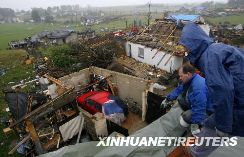 8月16日,在波蘭南部的斯切爾采奧波爾斯基附近,人們正在維修被龍卷風(fēng)損毀的房屋。據(jù)波蘭有關(guān)部門說,一場(chǎng)龍卷風(fēng)15日襲擊了波蘭一些地區(qū),造成3人死亡,另有數(shù)人受傷。 新華社/路透