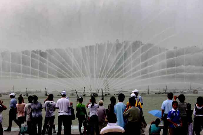 8月17日,人們在奧林匹克森林公園欣賞音樂噴泉表演。當(dāng)日,4萬觀眾來到北京奧林匹克公園游覽。占地1000多公頃的北京奧林匹克公園包括奧林匹克森林公園、景觀大道、國家體育館、國家體育場、國家游泳中心和運(yùn)動員村等設(shè)施。
