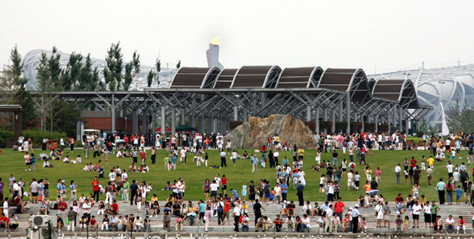 8月17日,人們?cè)趭W林匹克森林公園休息。當(dāng)日,4萬(wàn)觀(guān)眾來(lái)到北京奧林匹克公園游覽。占地1000多公頃的北京奧林匹克公園包括奧林匹克森林公園、景觀(guān)大道、國(guó)家體育館、國(guó)家體育場(chǎng)、國(guó)家游泳中心和運(yùn)動(dòng)員村等設(shè)施。