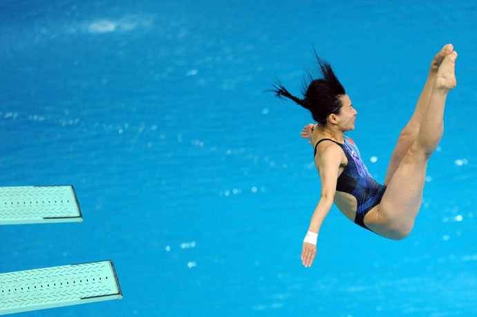 8月17日,中國選手郭晶晶在比賽中。當日,北京奧運會跳水比賽在國家游泳中心——“水立方”繼續(xù)進行,郭晶晶在女子3米跳板決賽中以415.35分的總成績獲得冠軍。