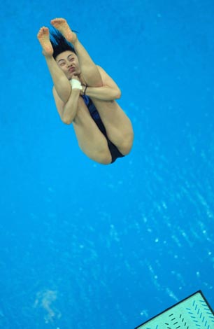8月17日,中國選手郭晶晶在比賽中。當(dāng)日,北京奧運(yùn)會跳水比賽在國家游泳中心——“水立方”繼續(xù)進(jìn)行,郭晶晶在女子3米跳板決賽中以415.35分的總成績獲得冠軍。
