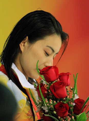 8月17日,中國選手郭晶晶在領(lǐng)獎臺上。