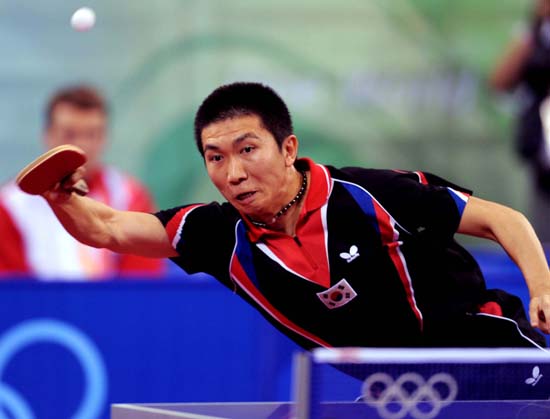 “我很高興我們得了團(tuán)體銅牌,也希望我在后面的單打中順利拿到金牌”,韓國名將、雅典奧運(yùn)會(huì)乒乓球男單冠軍柳承敏說!半m然也許不太容易,王皓現(xiàn)在看起來狀態(tài)不錯(cuò)! 奪取銅牌之役,似乎令柳承敏找回了自信。他不再像前一天銅牌資格賽中那樣低頭躲開記者,而是開心地停留在混合區(qū)表達(dá)他的喜悅。 柳承敏是典型的大賽興奮型選手,這也是中國隊(duì)一直對(duì)柳承敏嚴(yán)加提防的重要原因。人們一直忘不了2004年雅典奧運(yùn)會(huì),看起來實(shí)力稍遜的柳承敏超水平發(fā)揮,一舉戰(zhàn)勝王皓奪得奧運(yùn)會(huì)男單冠軍。 這次柳承敏還會(huì)再次上演“雅典神話”嗎? 經(jīng)歷辭職再回歸風(fēng)波的韓國隊(duì)主教練劉南奎,坦率地對(duì)柳承敏的單打局勢表示擔(dān)心。從開賽以來的表現(xiàn)看,柳承敏表現(xiàn)不佳,在與中國香港隊(duì)的銅牌資格賽中,柳承敏以2:3輸給李靜,這也是當(dāng)日韓國隊(duì)唯一的輸局。更早以前的小組賽上,柳承敏連續(xù)輸給巴西選手蒙泰羅和中華臺(tái)北隊(duì)的莊智淵。 團(tuán)體之后,單打開始。按照目前的抽簽結(jié)果,如果一切順利,柳承敏和王皓這一對(duì)“冤家”將等不到半決賽就會(huì)再次遭遇。 還是那個(gè)問題,奇跡還會(huì)發(fā)生嗎?雖然兩者狀態(tài)與四年前已不可同日而語,團(tuán)體賽半決賽中更是輸給了王皓。但不到最后一刻,誰也不敢輕言勝負(fù)。 “單打比賽我會(huì)竭盡全力”,柳承敏說。