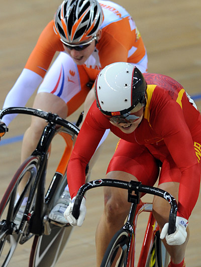一團(tuán)紅色火球與一團(tuán)橙色火球,挾裹著全場觀眾陣陣驚雷般的吶喊聲,以電光火石之速,沖向終點(diǎn)線。50米,40米,30米,20米,10米,沖刺。郭爽贏了!不過,她贏的是銅牌。 盡管被寄予很大希望的郭爽沖金未成,但剛賽完的她在繞場騎行時,全場仍然一片歡呼,觀眾打出“郭爽真爽”的紅色橫幅為她慶祝勝利。 本來她應(yīng)該可以力爭金牌。在先前的半決賽上,郭爽在前兩輪與上屆奧運(yùn)會季軍安·米亞雷斯戰(zhàn)平。在關(guān)鍵的第三輪,這位內(nèi)蒙古姑娘又一次發(fā)威,以非常微弱的優(yōu)勢先于米亞雷斯沖過終點(diǎn)線。不幸的是,她因侵入對手車道犯規(guī)而被降級到季軍爭奪戰(zhàn)。 “奪得銅牌我感到非常高興和滿意,這證明我今后有更大的發(fā)展空間,”22歲的郭爽并沒有覺得銅牌代表遺憾。 但64歲高齡的法國教練丹·莫雷龍卻表示出非常遺憾:“盡管英國選手實力強(qiáng)勁,但郭爽完全可以沖擊金牌,銀牌對她猶如探囊取物,一枚銅牌實在太可惜了!痹鴰С鲞B續(xù)四次世錦賽冠軍、連續(xù)兩屆奧運(yùn)會冠軍費(fèi)·巴朗熱的莫雷龍在退休前沒能把郭爽帶成奧運(yùn)會冠軍。 1986年2月26日,郭爽出生在郭靖曾經(jīng)彎弓射大雕的大草原。13歲那年,她雙腳踏上了自行車運(yùn)動生涯。2002年,她被派往瑞士的世界自行車中心學(xué)習(xí),主攻女子爭先賽,師從馬涅教練,被馬涅教練贊為“聰明、天賦好、領(lǐng)悟力強(qiáng)、非常勤奮,是他最好的學(xué)生”。此時,她在世界級舞臺上已經(jīng)嶄露頭角,脖子上已經(jīng)掛了好幾枚亮燦燦的金牌。據(jù)統(tǒng)計,在2005年之前,小郭爽連續(xù)6次獲得世界自行車賽女子爭先賽青少年組冠軍。