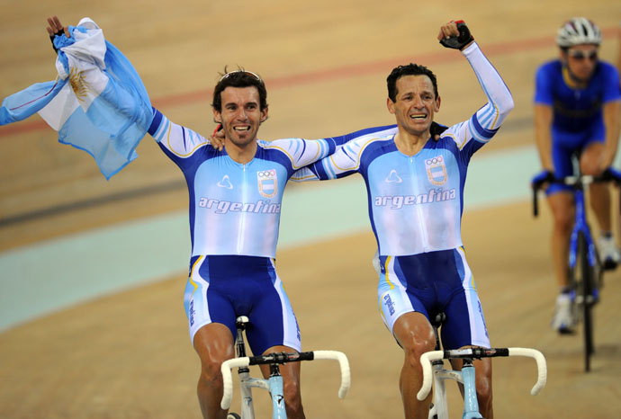 8月19日,阿根廷選手胡安·埃斯特萬·庫魯切特和瓦爾特·費(fèi)爾南多·佩雷斯在場地自行車男子麥迪遜賽決賽中,奪得金牌。