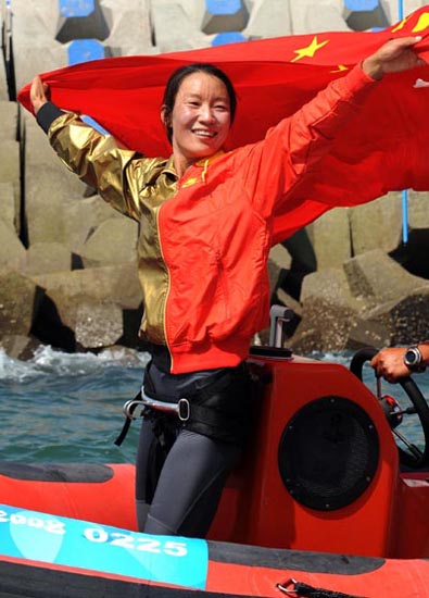 北京時(shí)間8月20日中午,在青島奧林匹克帆船中心剛剛結(jié)束的北京奧運(yùn)會(huì)女子帆板的比賽中,中國(guó)選手殷劍發(fā)揮出色,以總凈得分39分摘得該項(xiàng)目的金牌。這是中國(guó)代表團(tuán)獲得的第一塊奧運(yùn)會(huì)帆船金牌,同時(shí)也是中國(guó)代表團(tuán)在本屆奧運(yùn)會(huì)上獲得的第44金。意大利選手達(dá)歷山德拉·森西尼凈得分40分屈居亞軍。銅牌被英國(guó)選手布里妮·肖摘得,凈得分是45分。 四年前的雅典奧運(yùn)會(huì),殷劍曾獲得了米氏級(jí)帆板的銀牌,平了中國(guó)代表團(tuán)在奧運(yùn)會(huì)上帆船項(xiàng)目的最好紀(jì)錄。今天,她創(chuàng)造了歷史,獲得了中國(guó)代表團(tuán)歷史上第一枚奧運(yùn)會(huì)帆船項(xiàng)目的金牌!