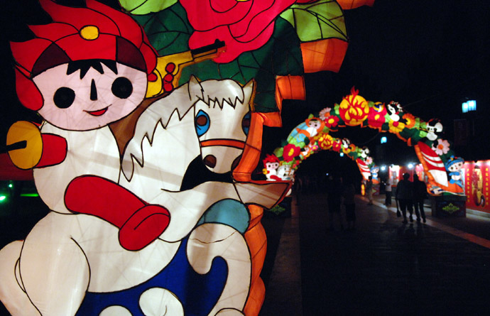 這是燈展上展出的“福娃”運動造型燈組(8月20日攝)。奧運會期間,北京地壇公園的大型燈展活動吸引了不少游客。此次燈展既有“福娃”乖巧伶俐的運動造型,也有“相約2008”和體育剪紙燈組,來自我國不同地區(qū)、具有民族特色的燈飾也在燈展上亮相。據(jù)介紹,整個活動將持續(xù)到8月22日。