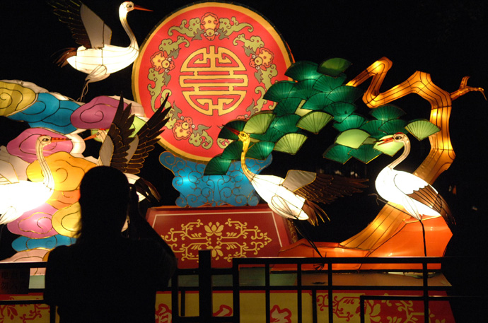 8月20日晚,游人在觀賞燈展。奧運(yùn)會(huì)期間,北京地壇公園的大型燈展活動(dòng)吸引了不少游客。此次燈展既有“福娃”乖巧伶俐的運(yùn)動(dòng)造型,也有“相約2008”和體育剪紙燈組,來(lái)自我國(guó)不同地區(qū)、具有民族特色的燈飾也在燈展上亮相。據(jù)介紹,整個(gè)活動(dòng)將持續(xù)到8月22日。