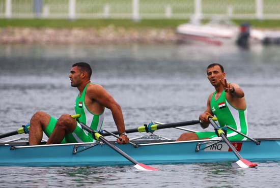 在男子雙人雙槳賽艇預(yù)賽中,來自伊拉克的運(yùn)動員成績墊了底。可是,對于這個動蕩不安的國家而言,參與就是莫大的勝利。