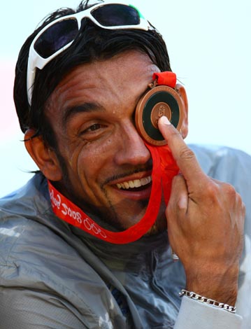 8月22日,意大利選手安東尼奧·馬西米利亞諾·斯卡杜托興奮地展示銅牌。