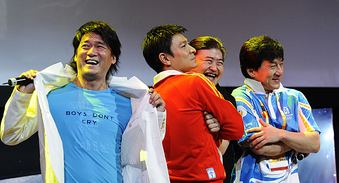 8月22日,在北京奧林匹克中心區(qū)中國(guó)移動(dòng)展示廳,成龍、劉歡、劉德華和周華健(右起)在《難說再見》發(fā)布會(huì)上與奧組委工作人員互動(dòng)。在奧運(yùn)即將落幕之際,由四人首次攜手合作共同演唱的歌曲《難說再見》將作為北京奧運(yùn)與世界話別的標(biāo)志性符號(hào)。該曲由中國(guó)移動(dòng)在發(fā)布會(huì)上同步無(wú)線首發(fā),并聯(lián)合北京奧組委文化活動(dòng)部制作單曲,免費(fèi)贈(zèng)送給奧運(yùn)工作者。