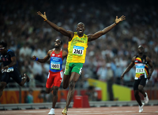 盡管在今年5月曾經(jīng)打破男子百米世界紀(jì)錄,但博爾特真正被世界認(rèn)知,并且登堂入室成為體壇巨星,是在北京奧運(yùn)會。他在雅典奧運(yùn)會時僅獲200米第五名,去年田徑世錦賽也只獲兩項亞軍。然而,這個身高1米96的“大鳥”,在“鳥巢”連續(xù)獲得男子100米、200米、4X100米冠軍,并刷新這三個項目的世界紀(jì)錄。尤其是在100米決賽中,他放棄沖刺,跳舞一般就跑出了9秒69,而200米世界紀(jì)錄已保持了12年之久。從來沒有任何人在一屆奧運(yùn)會上獨(dú)拿3枚短跑金牌并全部打破世界紀(jì)錄,其成就絕對是前無古人。