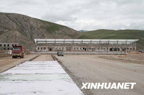 圖為玉樹機(jī)場建設(shè)現(xiàn)場(8月25日攝)。