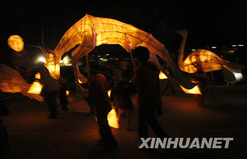 9月7日,在南非瑟德堡地區(qū),當?shù)貎和瘮y燈籠參加“生命的景觀”活動。新華社/路透