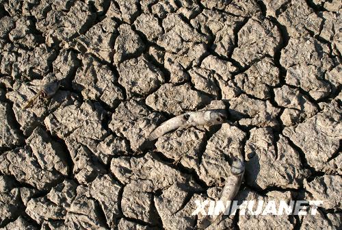 9月13日,在巴拉圭境內(nèi)一處完全干涸的河床上,一名當(dāng)?shù)鼐用袷峙跛吏~的尸體。巴拉圭部分地區(qū)最近發(fā)生嚴(yán)重旱災(zāi),河流干涸造成飲水奇缺。目前當(dāng)?shù)匾延兄辽?人死于缺水,另外旱情還造成大量牲畜死亡,加劇了當(dāng)?shù)孛癖娚畹睦Ь场?/TD> | |
