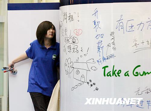 9月16日,某“減壓房”的墻壁上寫著白領(lǐng)們的“心里話”。
