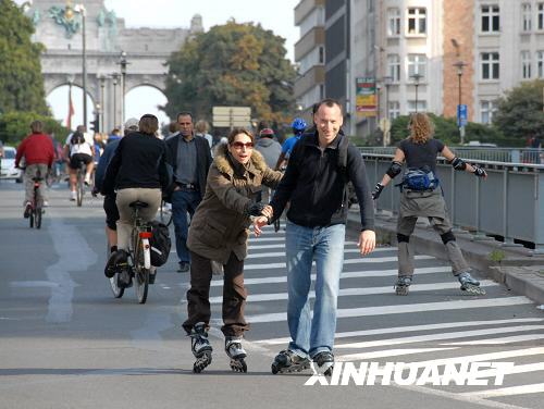 9月21日,在比利時(shí)首都布魯塞爾,一些市民滑旱冰出行。當(dāng)日,布魯塞爾開展“無車日”活動(dòng)。市區(qū)內(nèi)所有私人機(jī)動(dòng)車輛在9點(diǎn)至19點(diǎn)間禁行。市民可以在此間免費(fèi)使用公交系統(tǒng)或租用自行車。布魯塞爾的“無車日”活動(dòng)從2000年開始,每年9月舉辦一次。 |