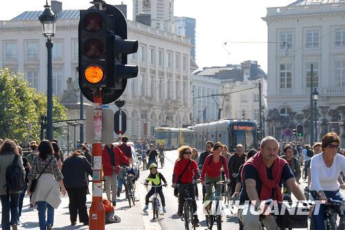 9月21日,在比利時(shí)首都布魯塞爾,市民騎自行車出行。當(dāng)日,布魯塞爾開展“無車日”活動(dòng)。市區(qū)內(nèi)所有私人機(jī)動(dòng)車輛在9點(diǎn)至19點(diǎn)間禁行。市民可以在此間免費(fèi)使用公交系統(tǒng)或租用自行車。布魯塞爾的“無車日”活動(dòng)從2000年開始,每年9月舉辦一次。 |