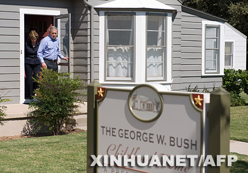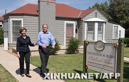 10月4日,美國總統(tǒng)布什攜夫人勞拉來到其位于得克薩斯州米德蘭城的兒時住所。
